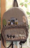 Sac à dos en tissus japonais avec paysage en appliqué. Grande poche appliquée fermée par un zip.