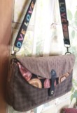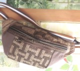Sac de taille moyenne à porter en bandoulière ou en sac de taille. 2 compartiments intérieurs. Rabat fermé par une pate en cuir noir.