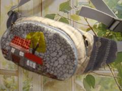 Mais, cette rubrique a son importance car tous les revenus de ces ventes seront entièrement reversés à une association qui me tient fort à coeur, gérée par une amie, association dans laquelle je me suis beaucoup investie à l'époque où j'habitais Saint-Pierre et Miquelon et qui mérite vraiment qu'on l'aide au maximum; il s'agit de SPM 3 A soit: "Saint-Pierre et Miquelon - Aide Aux Animaux"! Alors n'hésitez-pas! En vous faisant plaisir, vous contribuerez aussi à apporter un peu de réconfort à tous nos petits amis à pattes! Et, je vous en remercie.  BaladePrix: 40,00 € Pochette "banane" à porter à la taille; décoration paysage en appliqué main. Suite... |