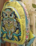 Sac à dos en tissus japonais avec paysage en appliqué. Grande poche appliquée fermée par un zip.