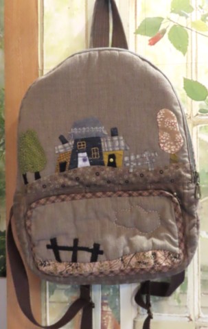 Sac à dos en tissus japonais avec paysage en appliqué.