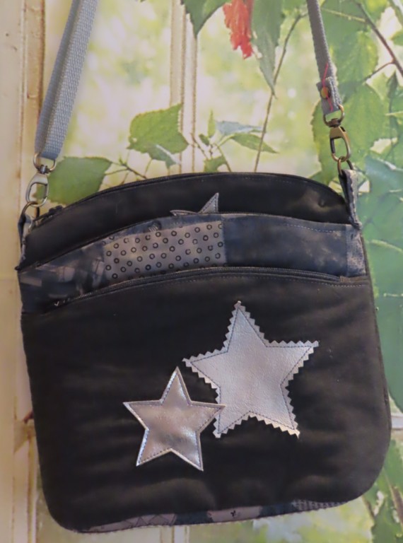 Petit sac bandoulière très classe, en tissu japonais indigo avec des accents en simili cuir argent.3 compartiments zippés et entre chaque, un compartiment libre pour rangement.Très pratique et très léger.